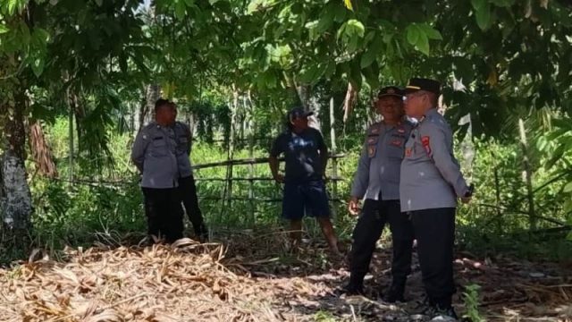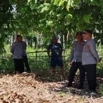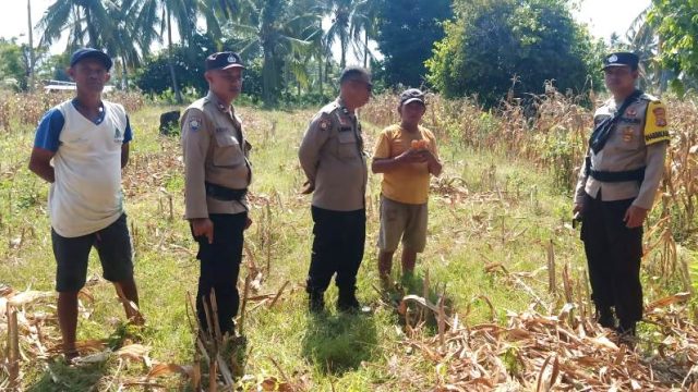 TOUNA – Personel Polsek Ampana Kota melakukan pengecekan langsung terhadap lahan jagung yang...