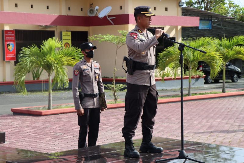 Sebagai pimpinan apel pagi Kapolres menyampaikan arahan Presiden RI Joko Widodo tentang masalah yang berhubungan dengan Covid 19, penghargaan dan apresiasi yang tinggi atas kerja keras Polri.