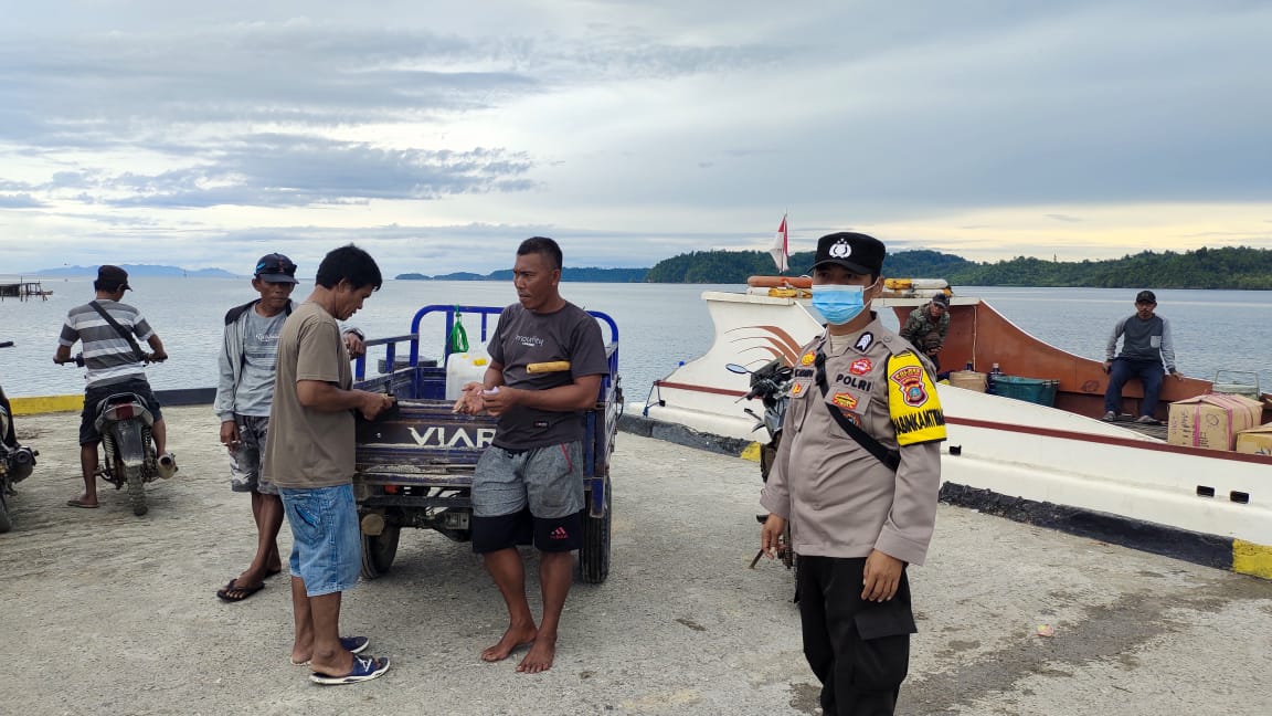 Dalam kegiatan ini, Bripka Lextito Gume menyambangi warga yang sedang beraktivitas menyampaikan pesan kamtibmas dan protokol kesehatan pakai masker saat keluar rumah dan bagi yangg belum di vaksin untuk melaksanakan vaksin di Puskesmas atau RSUD Wakai.