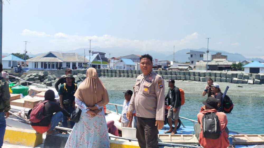 Anggota Polsek Ampana Kota Polres Touna Aiptu Sudirman bersama Aipda Yudhi paputungan, Aipda Rudianto,  Aipda Nengah dan Bripka Sigar melaksanakan Patroli di Kelurahan Uentanaga Bawah dan Pelabuhan Ampana, Kecamatan Ratolindo.