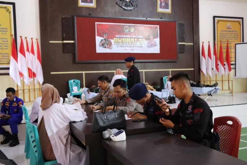 Polrestouna.com – Kepolisian Resor Touna Polda Sulteng menggelar bakti kesehatan donor darah dalam rangka memperingati dalam rangka memperingati 32 tahun Pengabdian Alumni AKABRI 91 di Aula Endra Dharma Laksana Polres Touna, Kamis (12/10/2023).
