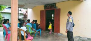 Polrestouna.com – Guna memberikan kenyamanan dan keamanan Bhabinkamtibmas Polsek Ulubongka Bripka Faisal melakukan patroli sekaligus melaksanakan pengamanan di Gereja GKST Bettel Soyomarade Desa Paranonge, Minggu (31/12/2023).