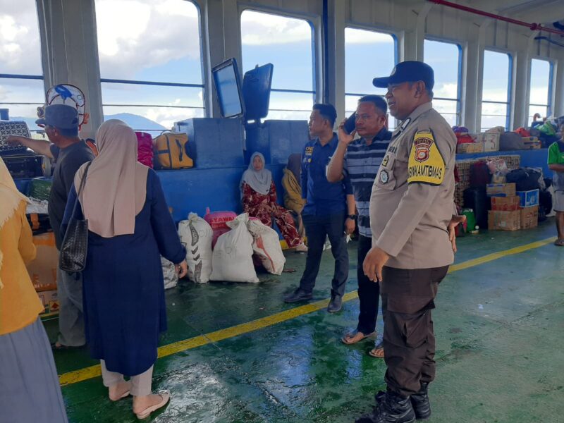 Dalam kegiatan ini Bhabinkamtibmas Bripka Husni Baharta berkolaborasi dengan Dinas Perhubungan Kabupaten Touna dalam rangka pengawasan dan pengamanan jadwal Kapal Feri KMP. Tuna Tomini dengan rute Ampana –Wakai – Gorontalo.