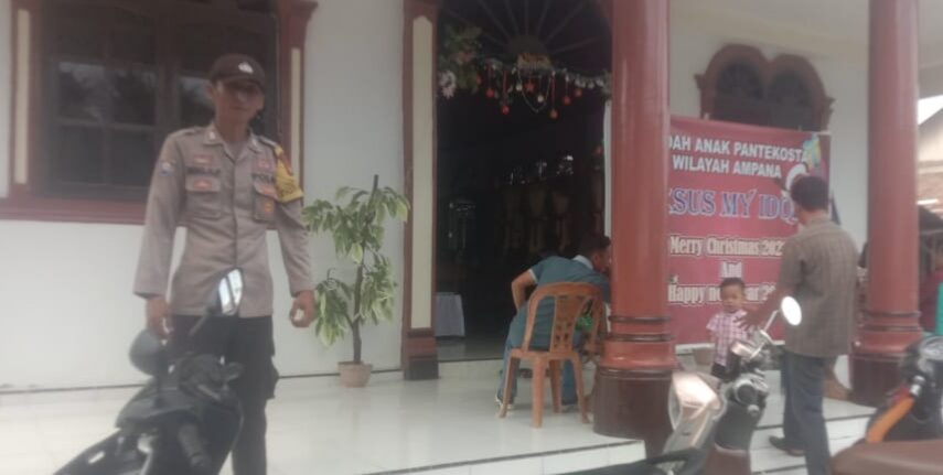 Polrestouna.com – Dalam rangka memberikan rasa aman kepada umat Nasrani yang sedang beribadah, personel Bhabinkamtibmas Polsek Ampana Tete melaksanakan pengamanan Gereja-gereja di wilayah hukumnya.