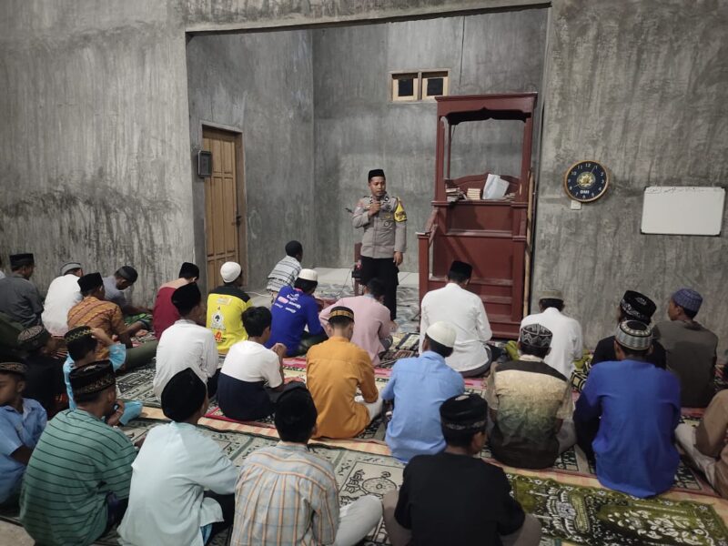 Selesai melaksanakan Shalat tarawih berjamaah, Bhabinkamtibmas Briptu Takbir menyampaikan himbauan Kamtibmas agar seluruh jemah meninggalkan rumah memastikan kompor atau tungku didalam Rumah Sudah di padamkan.