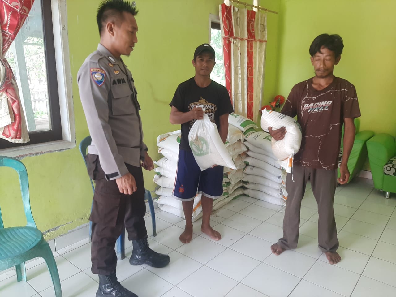 Bhabinkamtibmas juga memberikan himbauan kepada masyarakat agar tetap menjaga ketertiban saat pembagian beras.