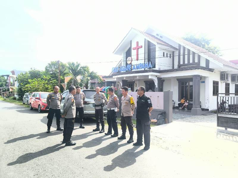 Guna memberikan rasa aman, personel Polres Tojo Una Una beserta Polsek jajaran kembali melaksanakan pengamanan gereja yang ada di wilayah hukumnya, Minggu (18/04/2025).