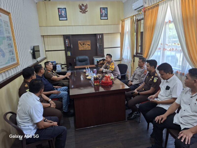 Pertemuan yang berlangsung di ruang kerja Kapolres Tojo Una-Una ini dihadiri oleh sejumlah pejabat utama dari kedua institusi, termasuk Wakapolres Tojo Una-Una Kompol Mulyadi, serta Kasi Intel Kejari Laode Muhammad Nuzul, S.H., Kasi Pidum Ade Candra Kirana Damanik, S.H., M.H., dan Kasi PB3R Dhimas Tri Sakti, S.H.