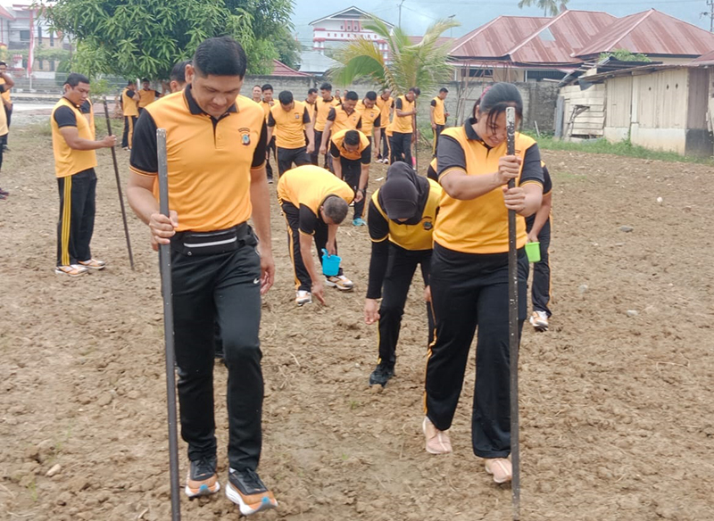 Kegiatan yang dimulai pukul 08.50 WITA ini berlangsung dengan semangat kebersamaan. Kapolres Yanna Djayawidya terlihat aktif mengarahkan para personelnya, mulai dari proses pengolahan lahan hingga penanaman bibit jagung.