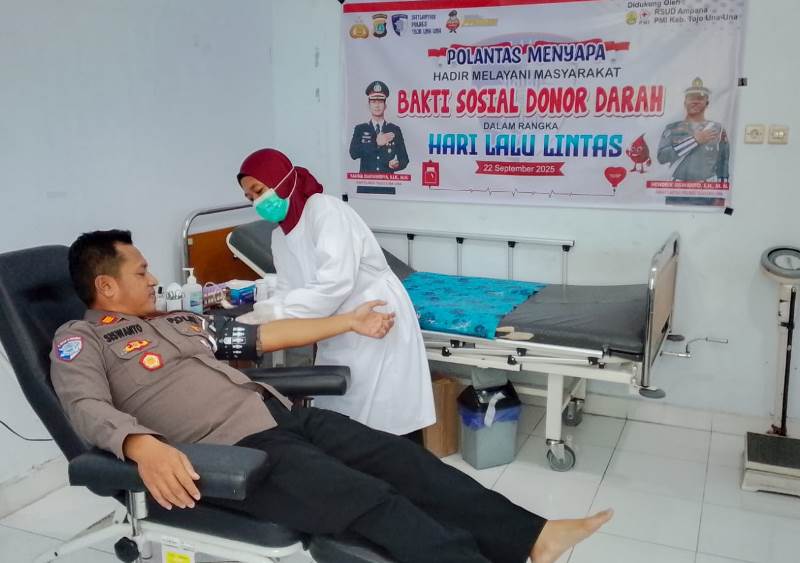 TOUNA – Satuan Lalu Lintas (Satlantas) Polres Tojo Una Una memperingati Hari Lalu Lintas Bhayangkara ke-70 dengan menggelar aksi donor darah di Rumah Sakit Umum Daerah (RSUD) Ampana, Kamis (11/09/2025).