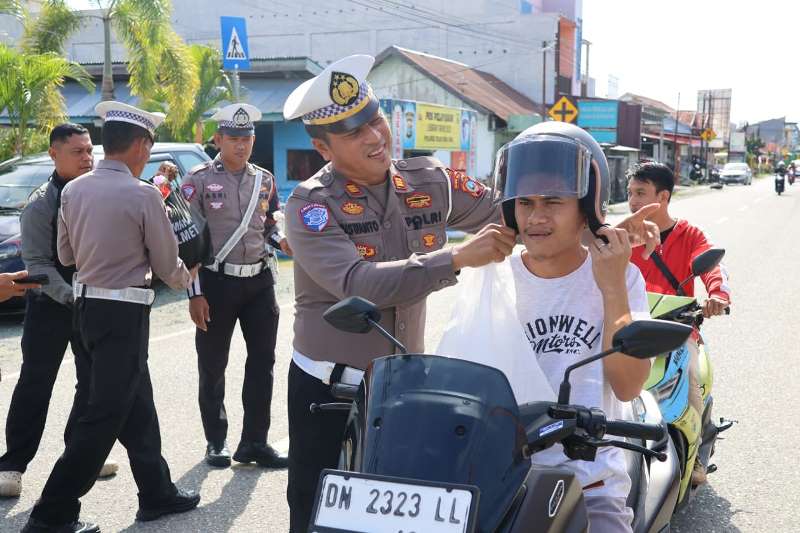 Dalam acara tersebut, Satlantas membagikan 20 buah helm gratis kepada pengendara sepeda motor yang tidak mengenakan helm. Aksi ini bertujuan untuk mengedukasi dan meningkatkan kesadaran masyarakat akan pentingnya keselamatan di jalan.