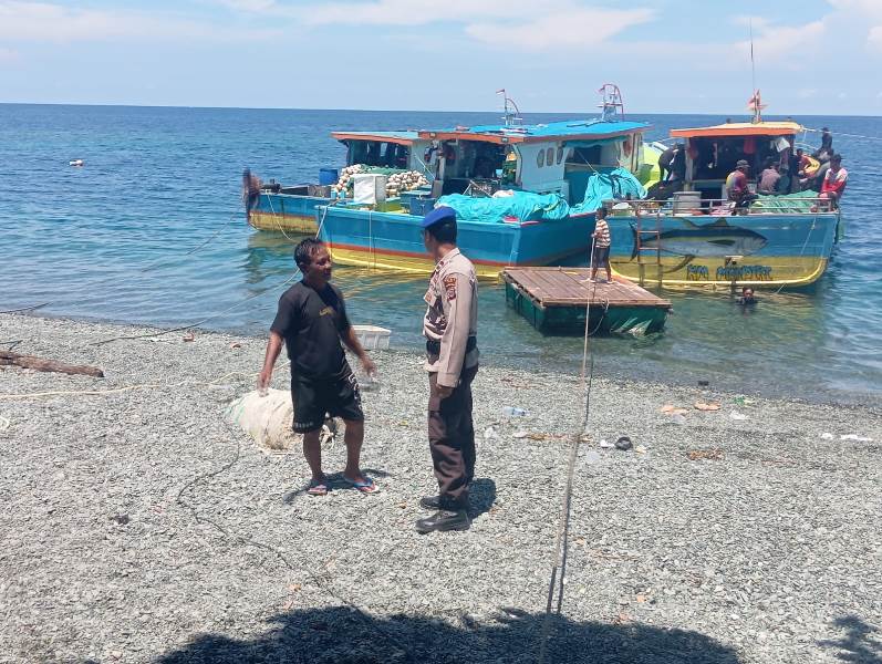 Tiga personel, Aipda Mulhakam, Aipda S. Nonci, dan Bripka F. Frangky Sualang, turun langsung menyambangi para nelayan untuk menyampaikan pesan Kamtibmas dan keselamatan melaut.