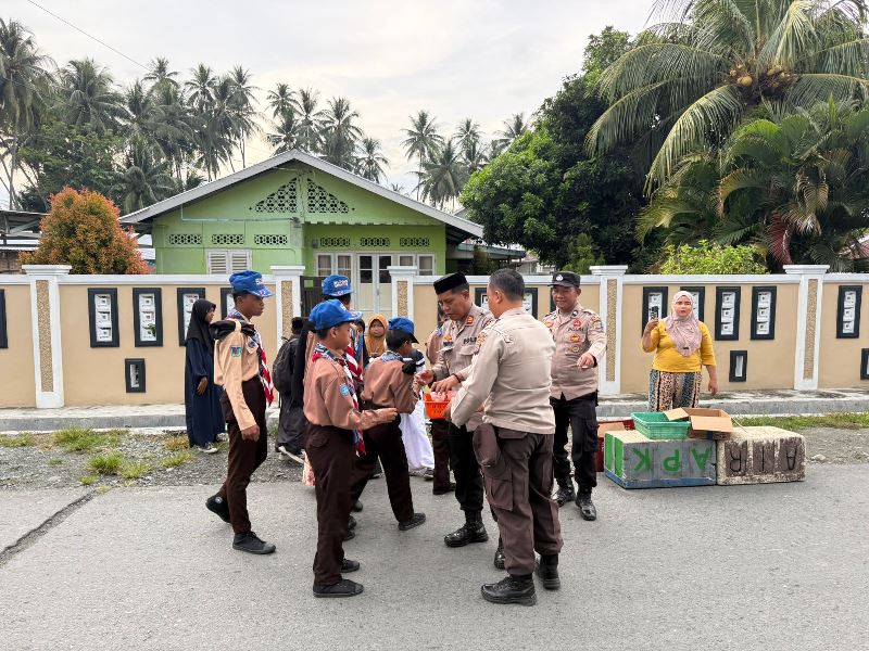 Di sela-sela pembagian makanan, personel Sat Binmas juga memanfaatkan momen tersebut untuk menyampaikan himbauan penting terkait keamanan dan ketertiban masyarakat (Kamtibmas).