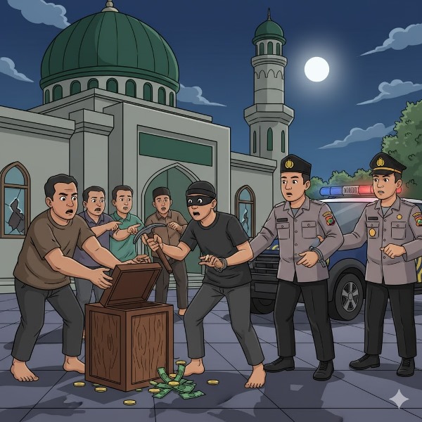 TOUNA – Aksi percobaan pencurian uang celengan atau kotak amal di Masjid Nurul Huda, Desa Sumoli, Kecamatan Ratolindo, Tojo Una Una (Touna), berhasil digagalkan oleh kesigapan warga setempat. Terduga pelaku, seorang pria berinisial MGA (43), kini telah diamankan oleh Polres Touna untuk proses hukum.