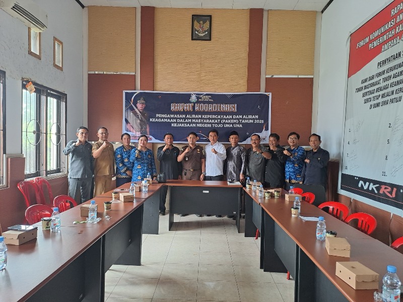 Hal tersebut disampaikan dalam Rapat Koordinasi Pengawasan Aliran Kepercayaan dan Aliran Keagamaan dalam Masyarakat (PAKEM) Tahun 2025 yang diselenggarakan oleh Kejaksaan Negeri Tojo Una Una, Senin (10/11/2025) bertempat di Aula Kantor Badan Kesatuan Bangsa dan Politik Kab. Touna.