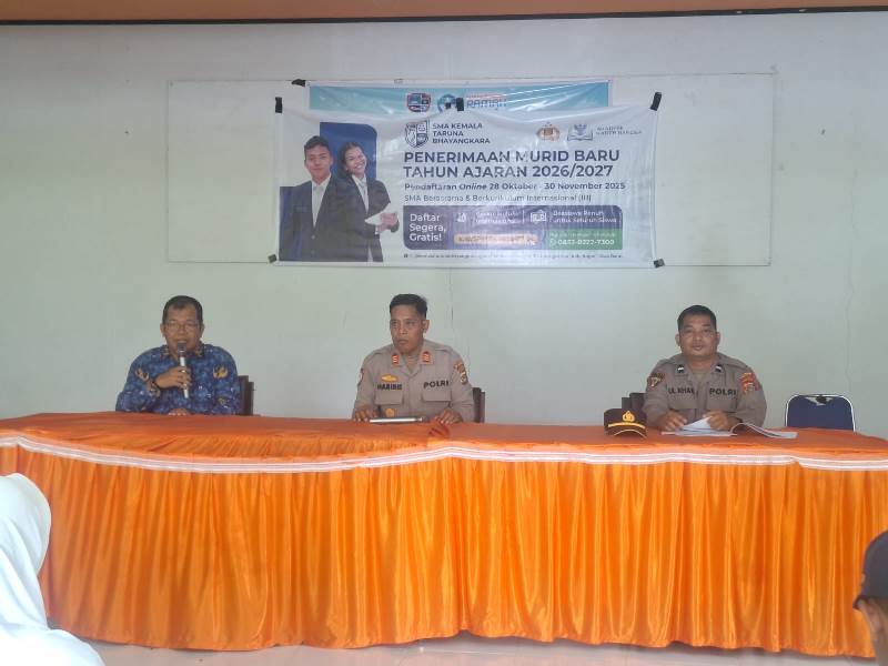 Touna – Sat Binmas dan Bag SDM Polres Tojo Una-Una aktif menjaring siswa berprestasi melalui kegiatan sosialisasi penerimaan siswa-siswi baru di SMA Kemala Taruna Bhayangkara tahun ajaran 2025.