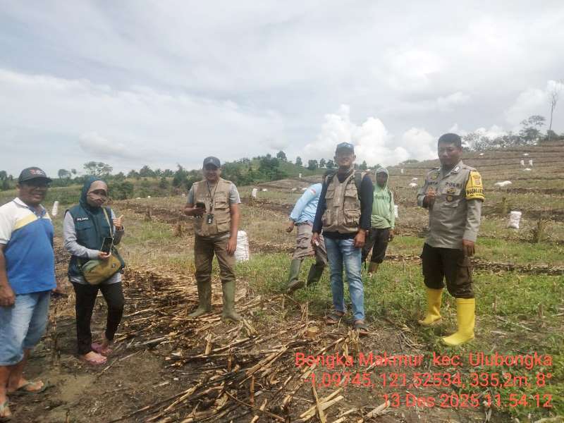 Bripka Surya, Bhabinkamtibmas Desa Bongka Makmur, terlibat langsung dalam kegiatan monitoring dan evaluasi (Monev) program Pendampingan Fasilitasi Agroforestri Pangan dan Energi – Perhutanan Sosial (PAFE-PS).