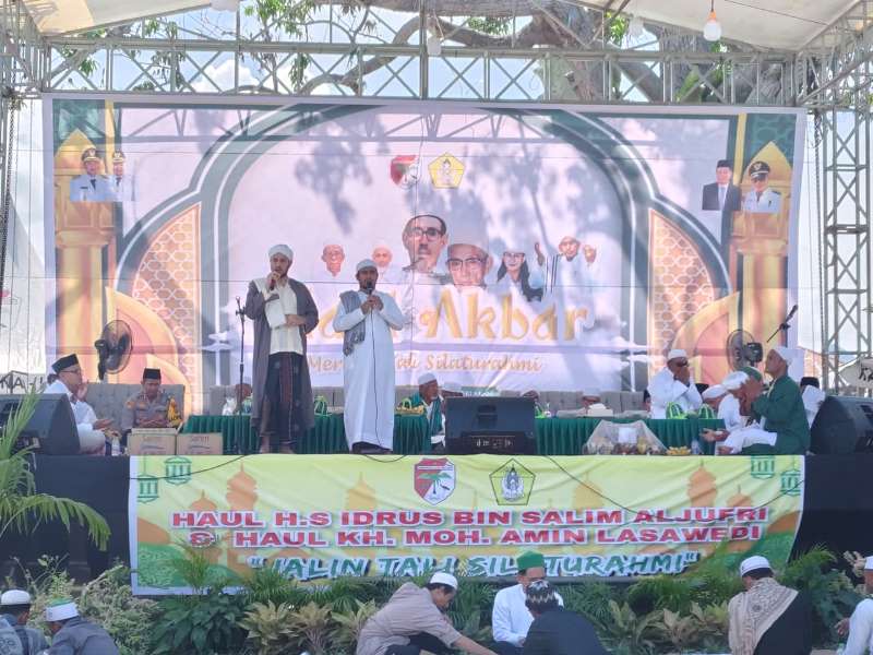 TOUNA – Suasana khidmat menyelimuti Jalan Yos Sudarso, Kelurahan Labiabae, Senin (22/12/2025). Ribuan umat muslim dari berbagai penjuru berkumpul menghadiri peringatan Haul Alhabib Assayyid Idrus Bin Salim Aljufri (Guru Tua) ke-57 dan KH. Mohammad Amin Lasawedi ke-25.