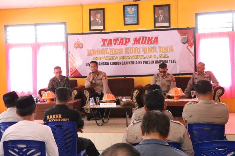 TOUNA – Melanjutkan rangkaian kunjungan kerjanya, Kapolres Tojo Una Una (Touna) AKBP Yanna Djayawidya, S.I.K., M.H., menyambangi Mapolsek Ampana Tete pada Jumat sore (23/01/2026). Dalam pertemuan tersebut, Kapolres menekankan pentingnya kolaborasi antara kepolisian, pemerintah kecamatan, dan masyarakat untuk menjaga stabilitas wilayah.