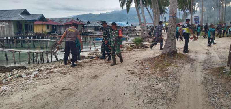 Personel gabungan dari TNI AD, TNI AL, Polri, pemerintah kecamatan, hingga pelajar bahu-membahu melaksanakan aksi “Peduli Pantai” demi mewujudkan lingkungan laut yang sehat dan bebas sampah.