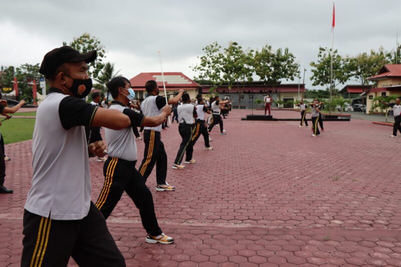 Tingkatkan Kemampuan, Personil Polres Touna Ikuti Latihan Beladiri Tongkat Polri