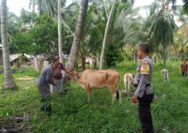 Dukung Pemerintah Antisipasi PMK, Bhabinkamtibas Polsek Ampana Kota Kembali Dampingi Vaksinasi Hewan Ternak
