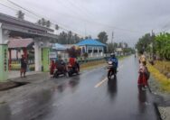Meskipun Diguyur Hujan, Personil Polsek Ampana Tete Tetap Semangat Laksanakan Pengaturan Arus Lalulintas